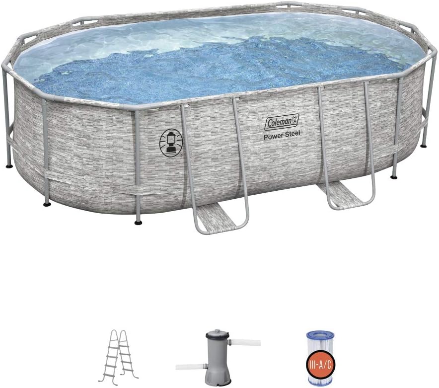 Amazon Com Colemann Coleman Power Steel Frame 16 X 10 X 48 Oval Pool Set Patio Lawn Garden